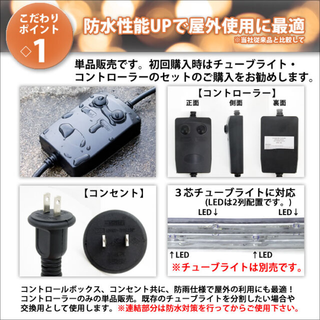 ・屋外でご使用される場合、コントローラーとチューブライトの接続部分及び