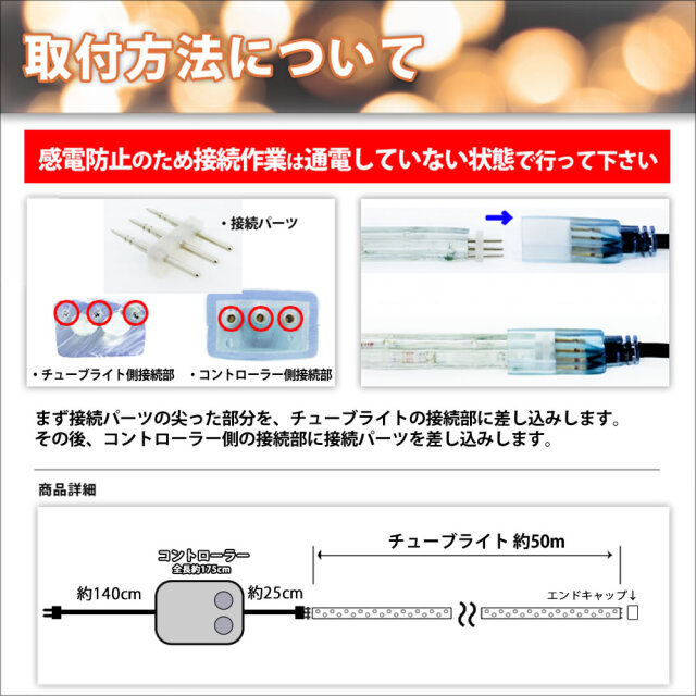 ※LEDチューブライトとの接続部については、自己融着テープ・ビニールテープを巻き、防水対策を行って下さい。
