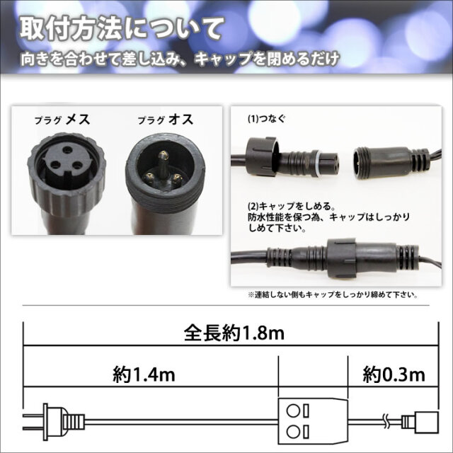 ・オス、メスのプラグをつないでキャップを締めるだけで簡単に接続できます。