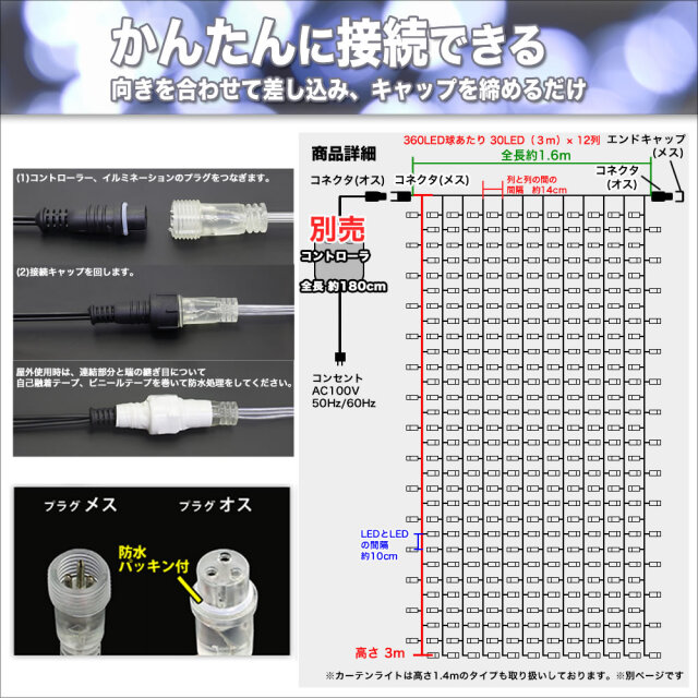 当ページは、イルミネーションロングカーテンライトのLED部分のみの単品商品です。