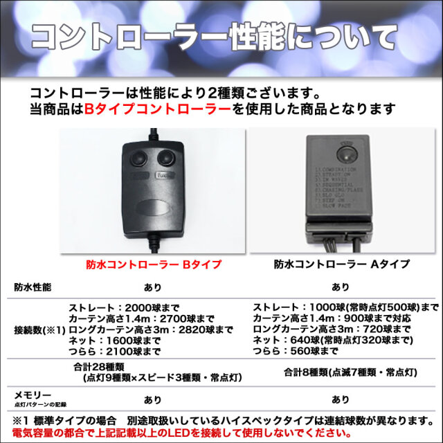 ・1コントローラーに対して接続可能なのは100球イルミネーション20本までとなります。